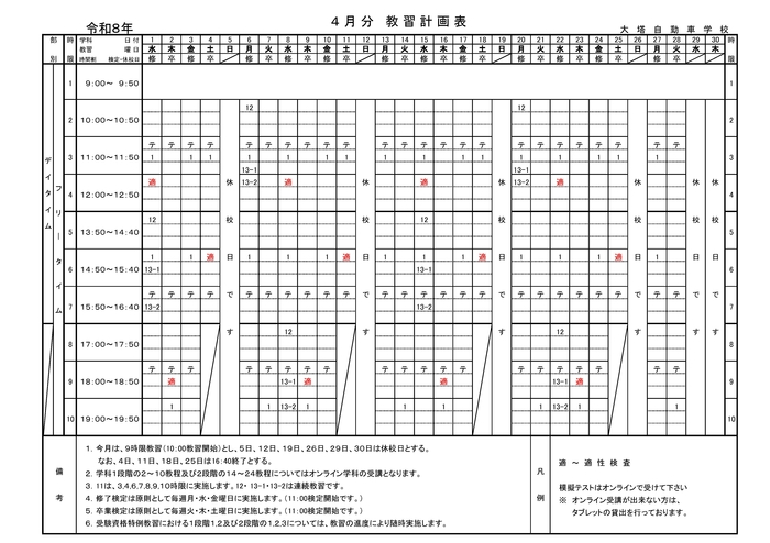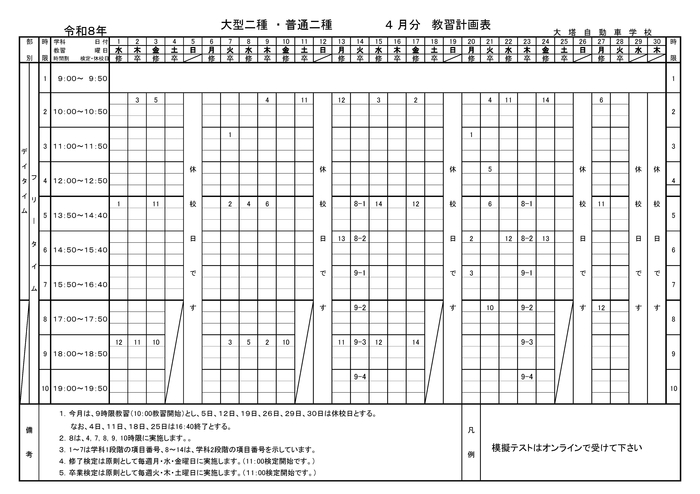 4月の「教習計画表」を掲載しました。